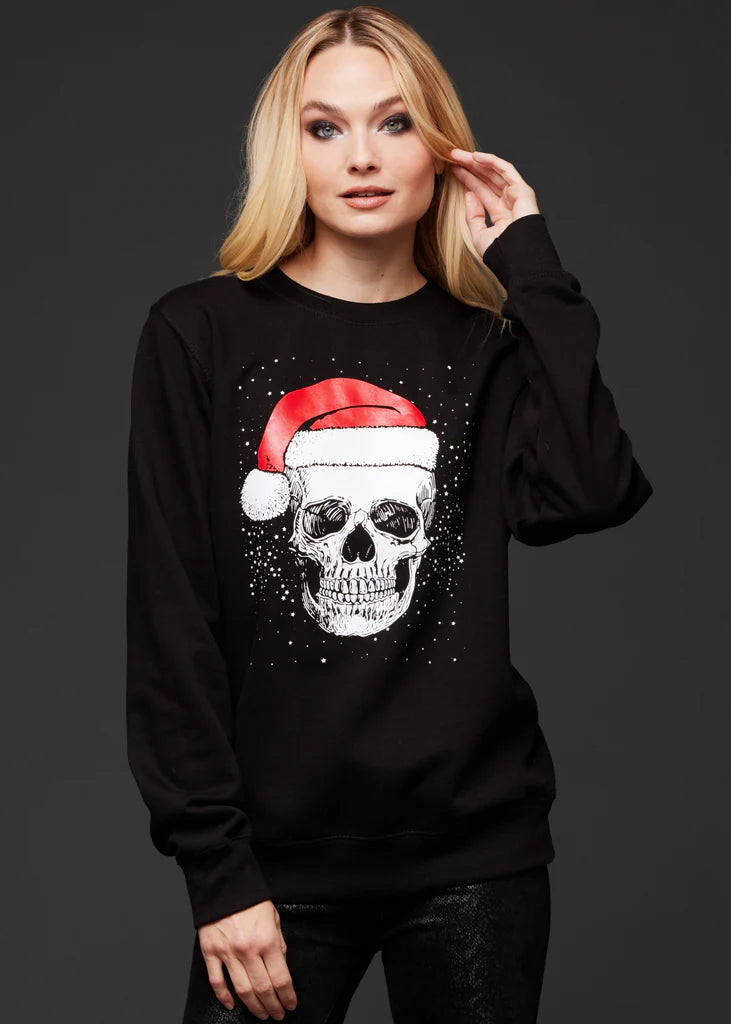 You’re bad to the bone this Christmas season with this comfy skull santa sweatshirt!